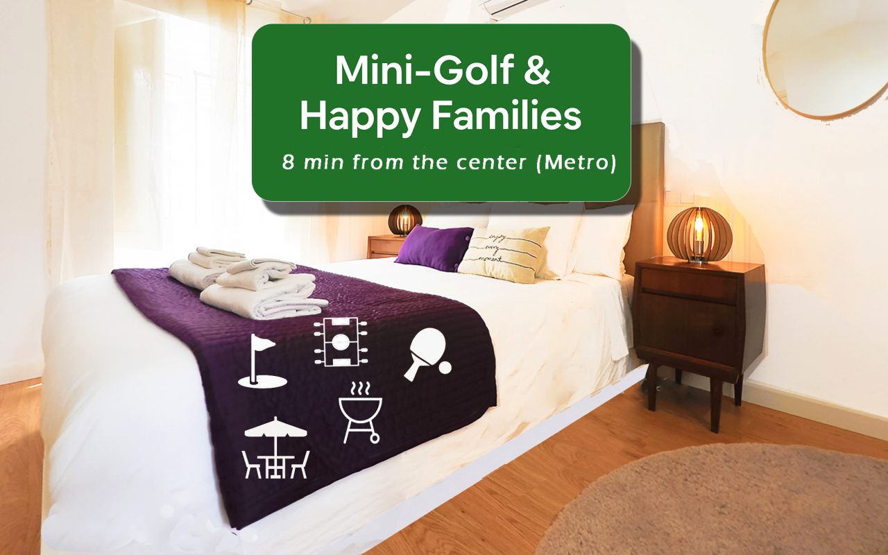 Access from the living room to the outdoor mini-golf and a small private space for meals. Located just eight minutes by metro from Porto’s historic center, perfect for exploring the city.